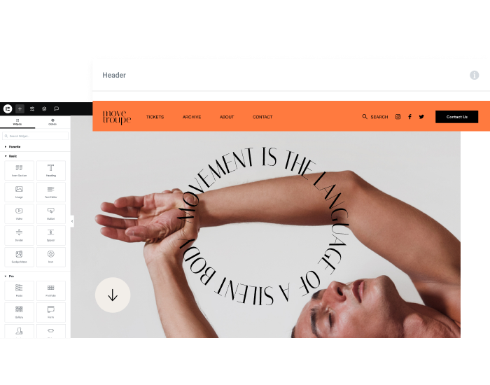 Design your perfect header and footer. Total creative freedom, maximum power.