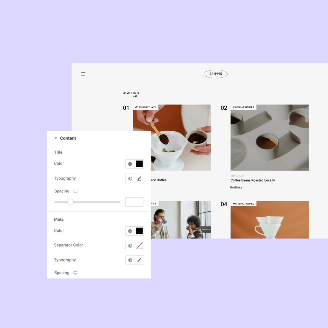 Build engaging listings for your products or posts with advanced features like the Loop Builder, Posts Widget, and Taxonomy Filter. Â