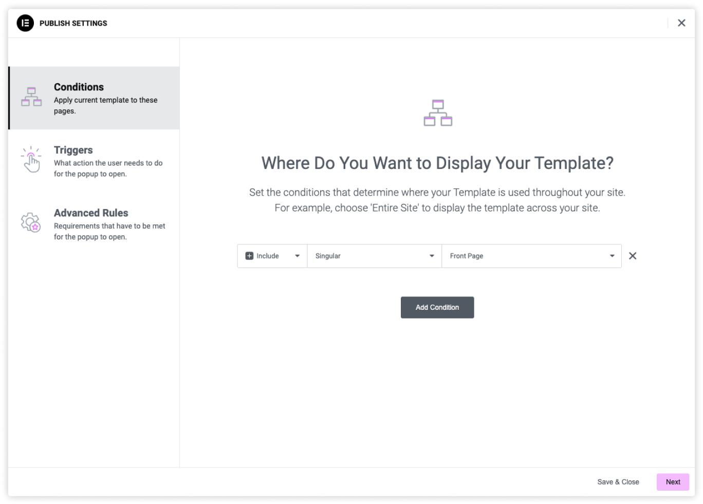 Popup Builder includes page-based, time-based, and device-based targeting as well as those driven by visitor behavior (clicks, scrolling, form submit and more)