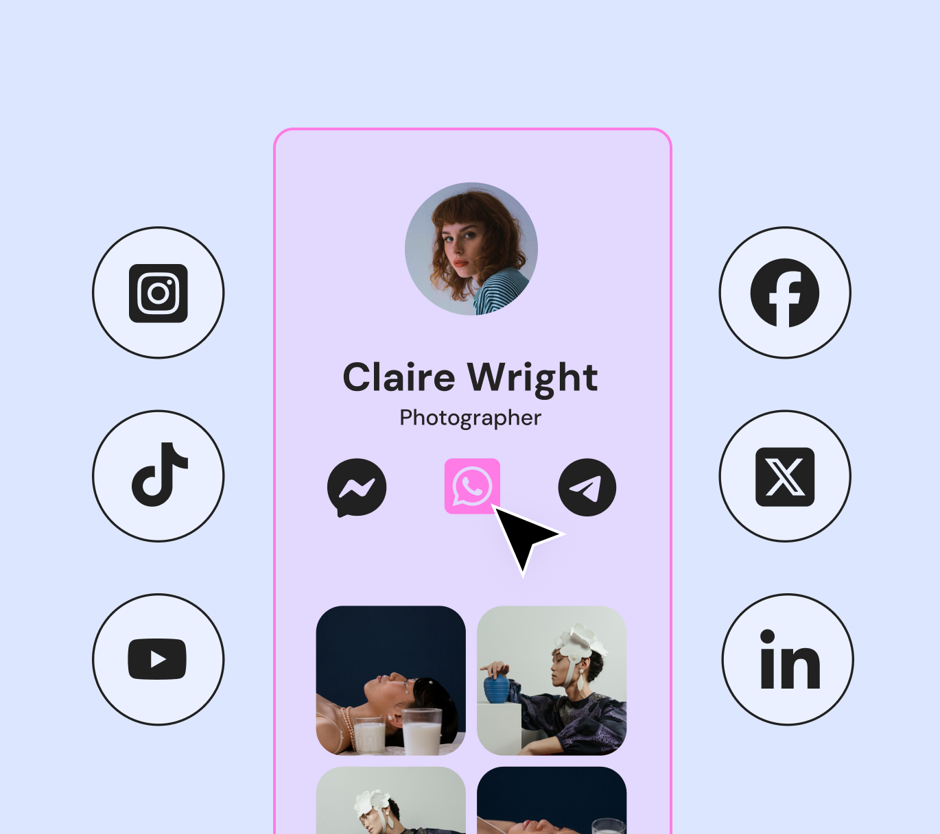 Create an memorable online presence with seven different Link in Bio layouts that fit your brand and marketing needs.