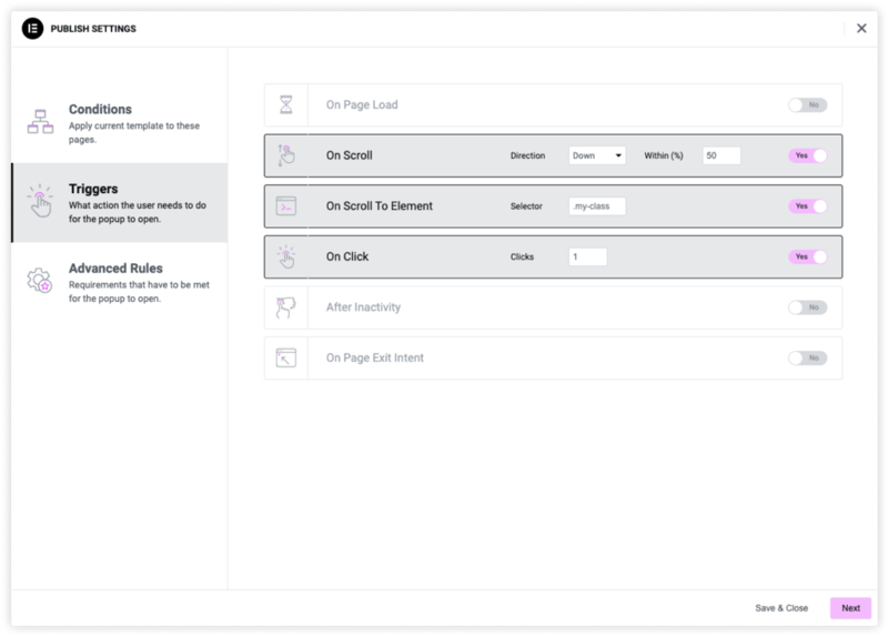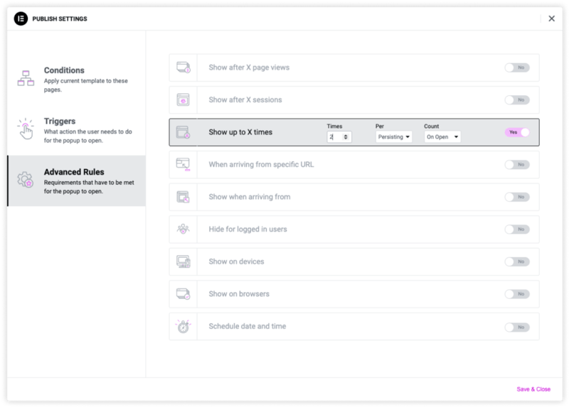 Personalization is key to improving conversion, and with smart display conditions you can customize when, where, and to whom popups appear.