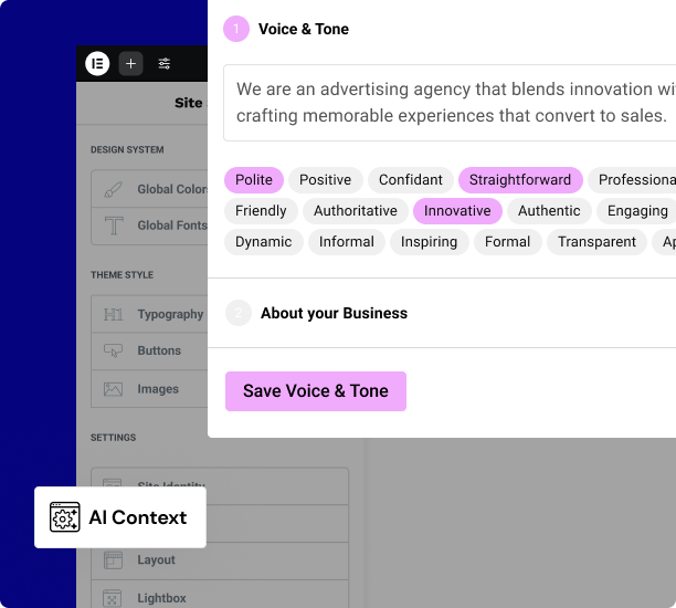 B. Druk op het AI-pictogram in elke Elementor widget die inhoud, afbeeldingen of code accepteert en je wordt naar de verbindingswizard geleid.
